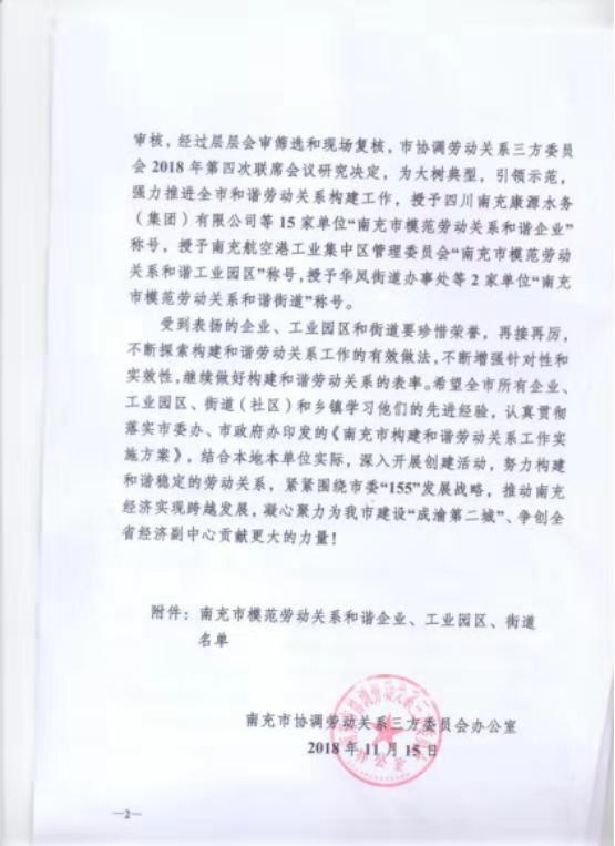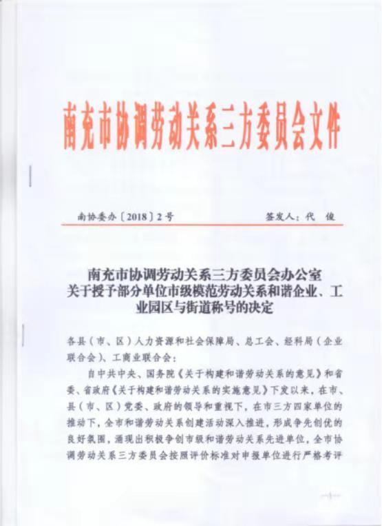 南充浩宇勞務被授予南充市模范企業(yè)